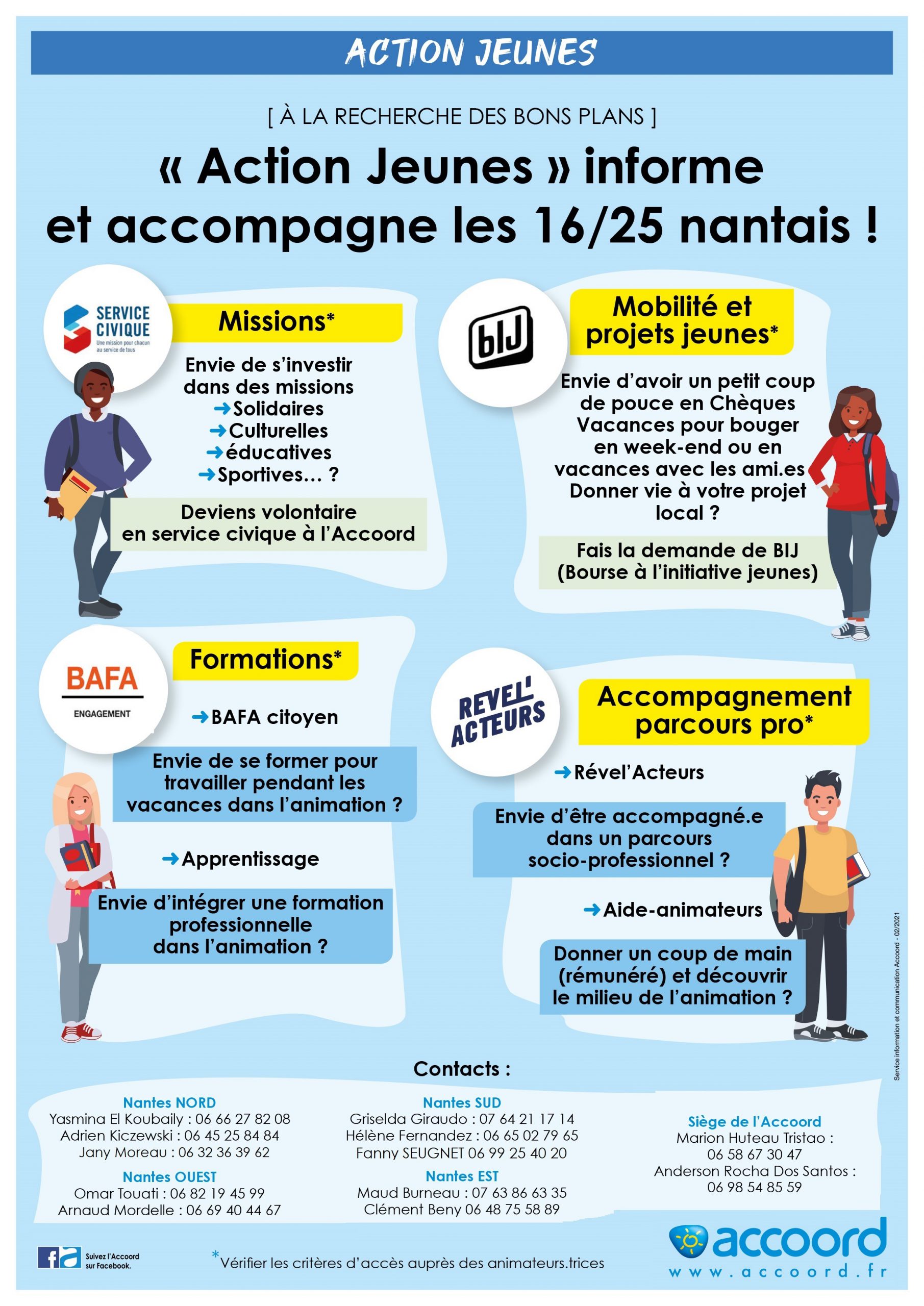La Bourse Initiatives Jeunes (BIJ) proposée par l’Accoord accompagne les jeunes nantais de 16-21 ans dans leurs projets de vacances. Vous résidez sur Nantes et vous avez un projet en tête pour occuper vos vacances ? Projet de loisirs, sportif ou culturel, adressez-vous à l’Accoord. La Bij vous apporte un soutien technique, pédagogique et financier. Un accompagnateur vous aide dans la […]
